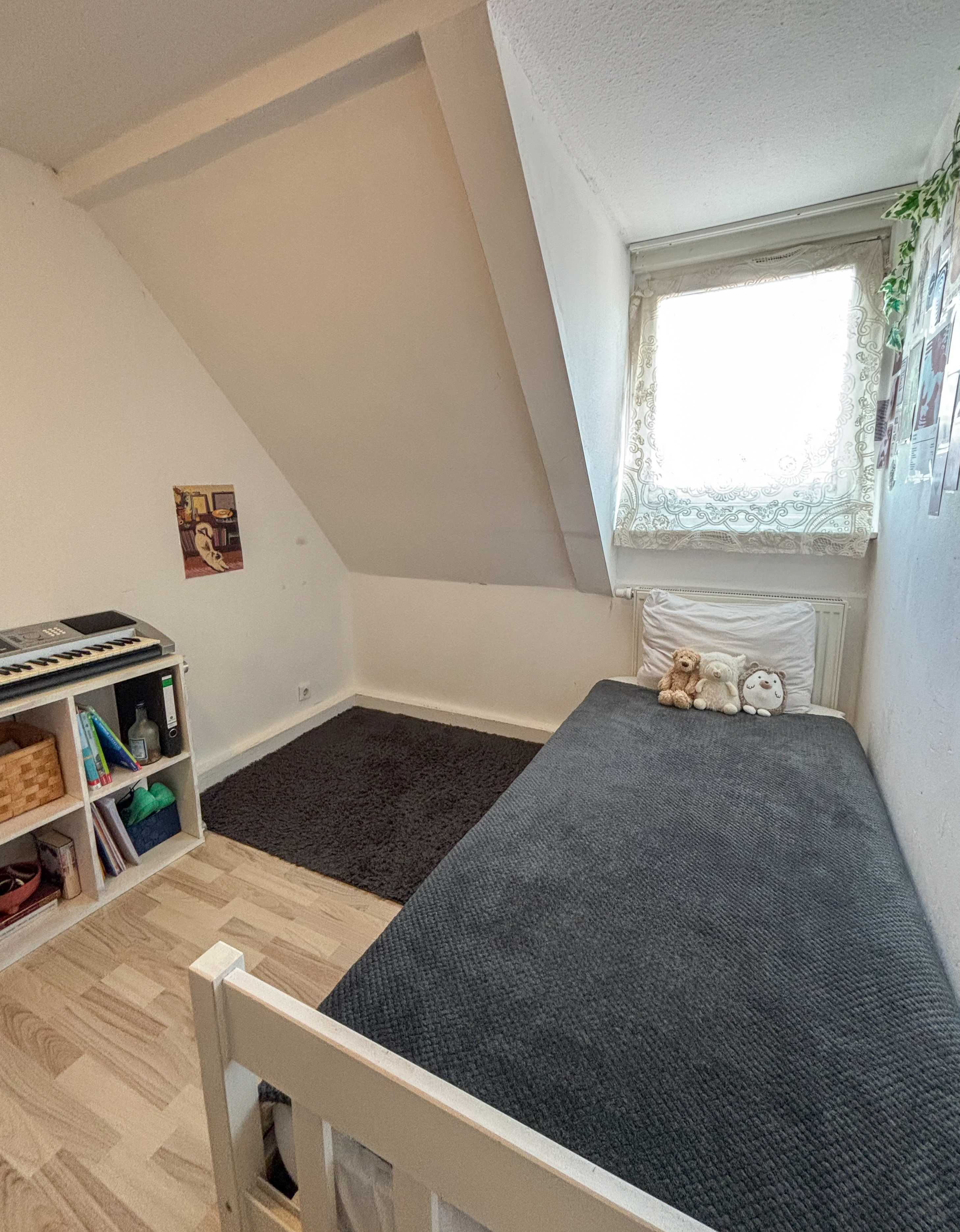 Im Obergeschoss befinden sich zwei helle Schlafzimmer, die sich ideal als Schlaf-, Kinder- oder Arbeitszimmer eignen. Sie bieten Raum für individuelle Gestaltung und persönliche Entfaltung. Ergänzt wird das Raumangebot durch einen weiteren kleineren Raum, der sich ideal als Ankleide eignet.